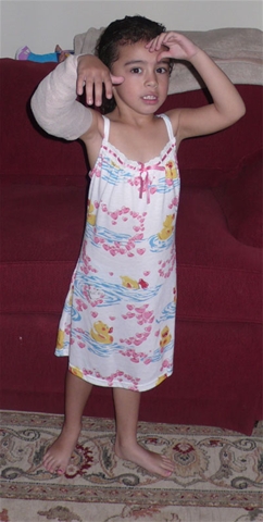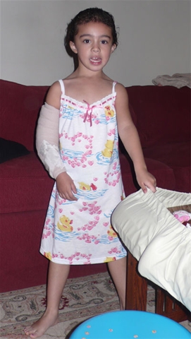 Danielle has been a trooper with her cast and sling. Here she is in her PJs (no sling at night).