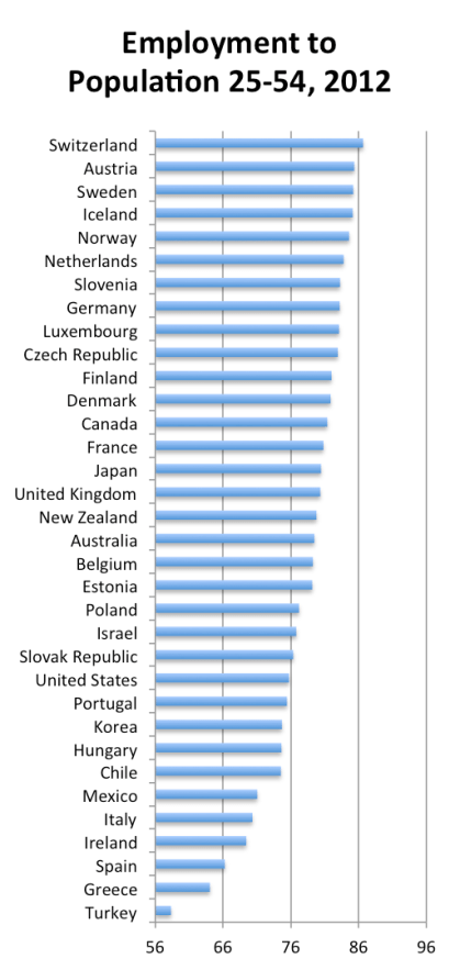 Via Antonio Fatas, an analysis of US labor participation vs. the rest of the OECD economies.
