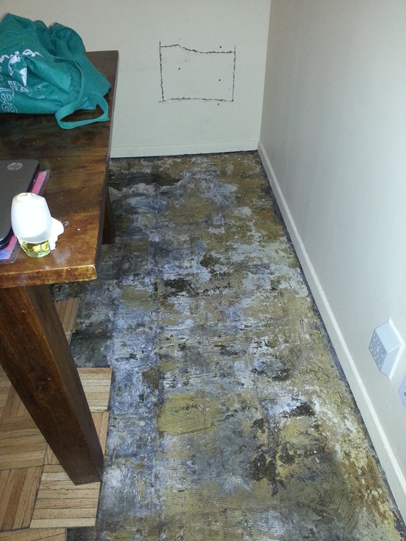 Or more accurately, more holes in walls. The saga continues. We are up to four holes and our superintendent “thinks” he knows where the leak is now.