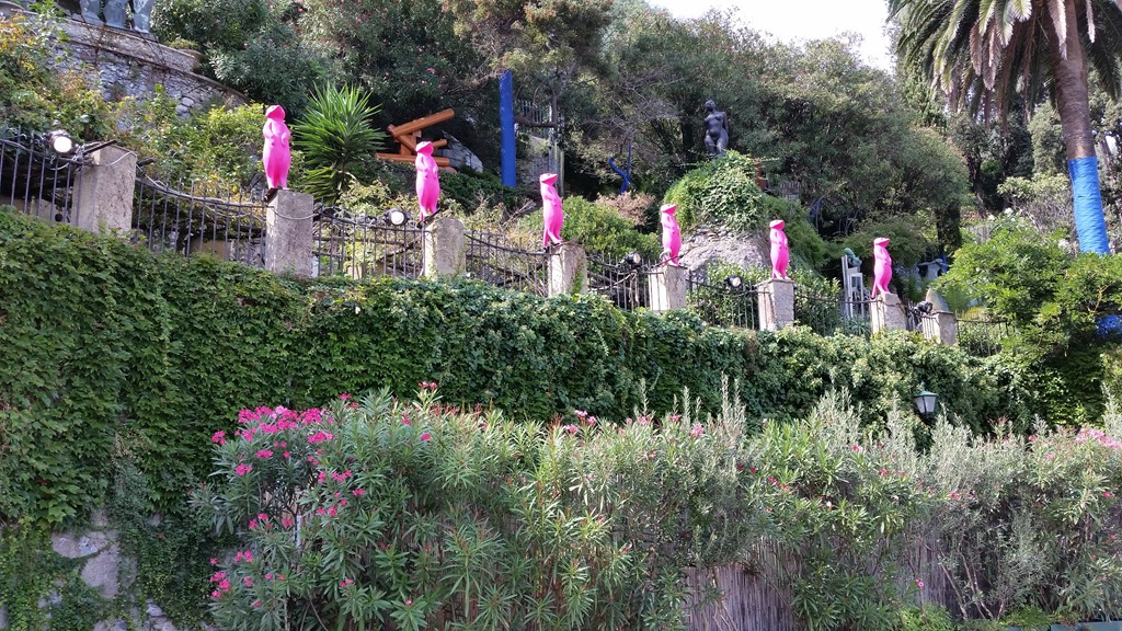 For reasons I cannot explain, there are statures of pink meerkats looking over the harbor.