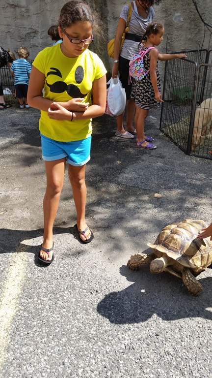 Along with the bouncy castles, arts and crafts and cotton candy, they had a “petting zoo” area. Not common in Brooklyn, but goats, some rabbits and some ducks/swans wasn’t that unusual.