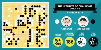 For those interested in cutting edge artificial intelligence, DeepMind’s AlphaGo program beat the world’s best Go player in the first of 5 games.