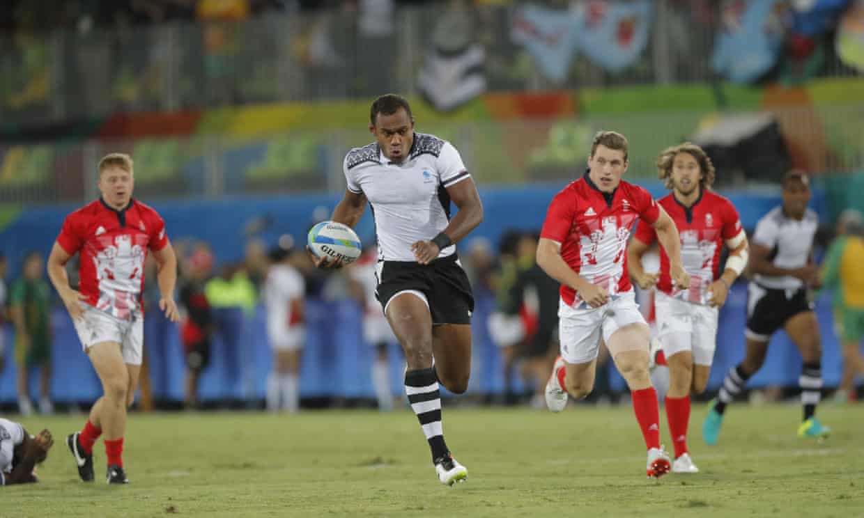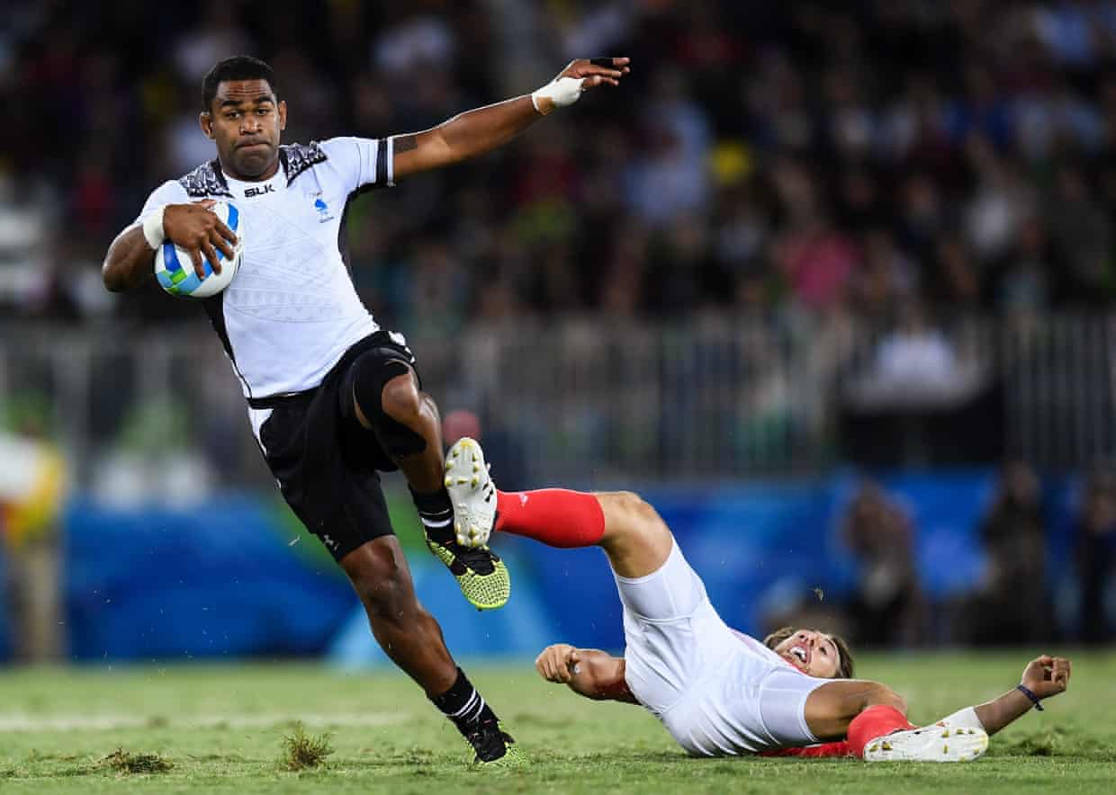 Bigger faster dudes from Fiji leaving the Brits in the dust. It was huge fun to watch.