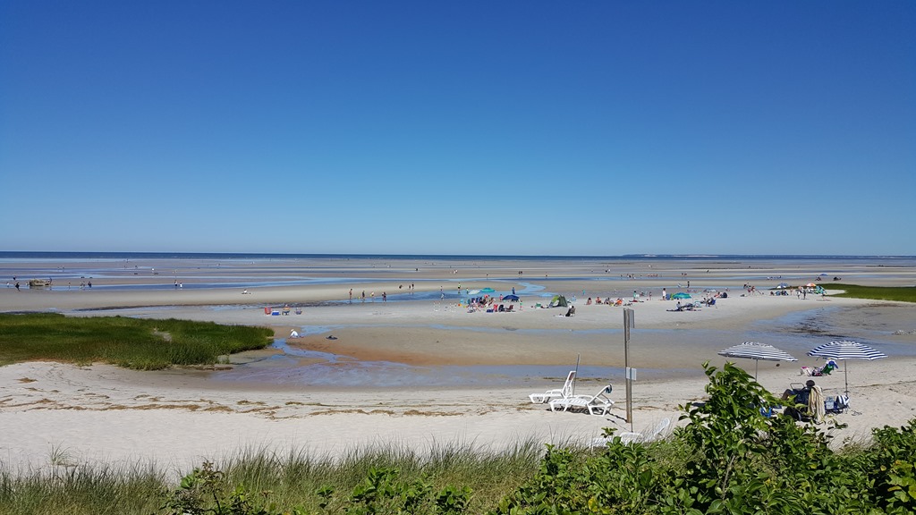 Describing the beach we stay on (Skaket Beach in Orleans MA) is hard. Other than being extremely kid friendly, it’s the tides that are exceptional. These pictures are from the same spot on our deck.