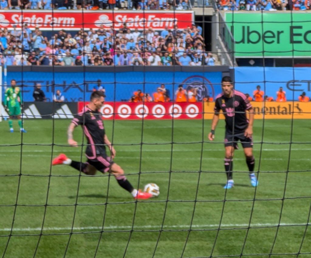 Our nephew got tickets to see NYC FC v Inter-Miami and hopefully see Messi play, so I got tickets as well. We had good seats by one goal, and it happened to be the goal Messi warmed up at.