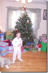 She didn’t wake up too early (Christmas present for me), but when she did she went straight for the tree: