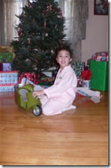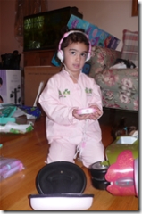 But by far her favorite present was her music player. It’s called an FP3 player (presumably the F stands for Fisher-Price), because it doesn’t use the MP3 format. We preloaded it with her favorite Wiggles music and she listened and sang all day.