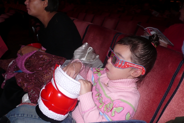 But here’s a picture of Danielle enjoying part of the 3-D Santa part of the show:
