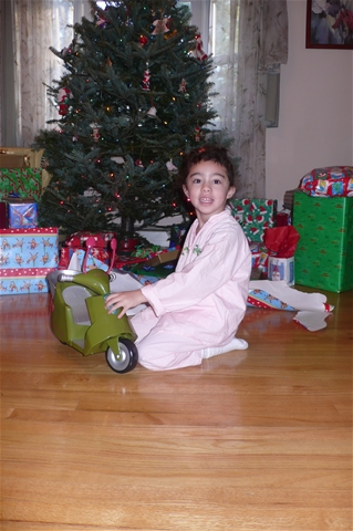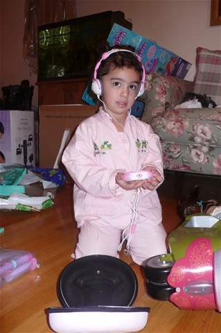 But by far her favorite present was her music player. It’s called an FP3 player (presumably the F stands for Fisher-Price), because it doesn’t use the MP3 format. We preloaded it with her favorite Wiggles music and she listened and sang all day.