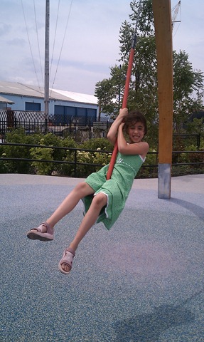 Danielle is doing a two-week gymnastics day camp at Chelsea Piers in Manhattan. This is the first time she’s ever had to get on a bus by herself to go to something like this. She has to meet the bus about 6 blocks away at 7:40 am. Thankfully she loves the camp, otherwise getting her ready in the morning could be a real chore.