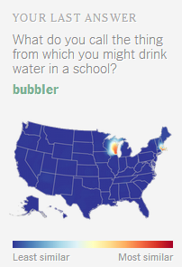 As soon as it asked “What do you call the thing from which you might drink water in a school?” I knew it would nail where I am from. People from Milwaukee call it a bubbler. Everyone else looks at us funny when we say that.