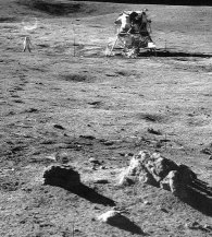 Apparently the Discovery channel has a Mythbuster show and in an upcoming episode they will be addressing the common “moon landing was faked evidence” that the moon photographs clearly show multiple light sources (as opposed to one sun) which proves they were done in a studio. Conspiracy theorists will say that this photo: