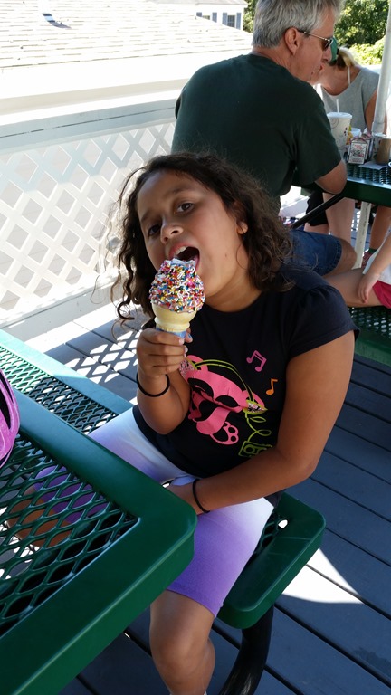 These seats were on the same level as the fancy suites. We weren’t in a suite, but we had nice cushioned seats with a TV screen and we could walk back to a big area that had a ton of free food. Booze was extra but the girls could get hot dogs, popcorn, lemonade, cotton candy, etc. (which they did).