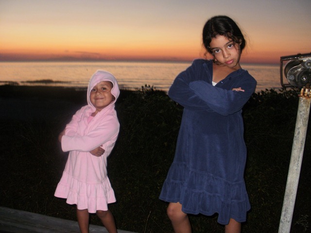 One amusing story happened the very first day. This beach house has three bedrooms on the first floor. Then there’s a spiral staircase to the upstairs where there are two more. You go up the stairs and one bedroom is to the left, then there’s a bathroom and to get to the back bedroom you have to go through the bathroom (one of those two door bathrooms). The whole upstairs has the slanted ceiling thing going on which makes it seem kind of like a clubhouse, so Danielle decided she wanted to sleep up there. Of course that means Tori does as well.