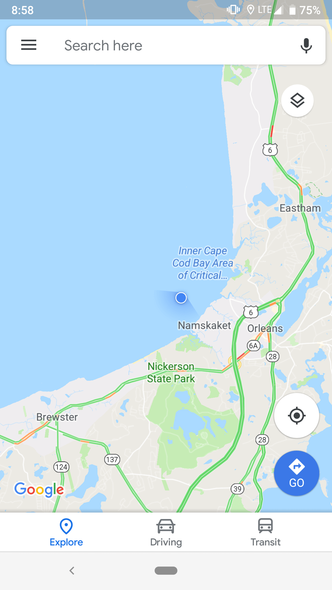 That’s not bad GPS, that’s accurate. Here’s a picture from that location, looking back towards shore.