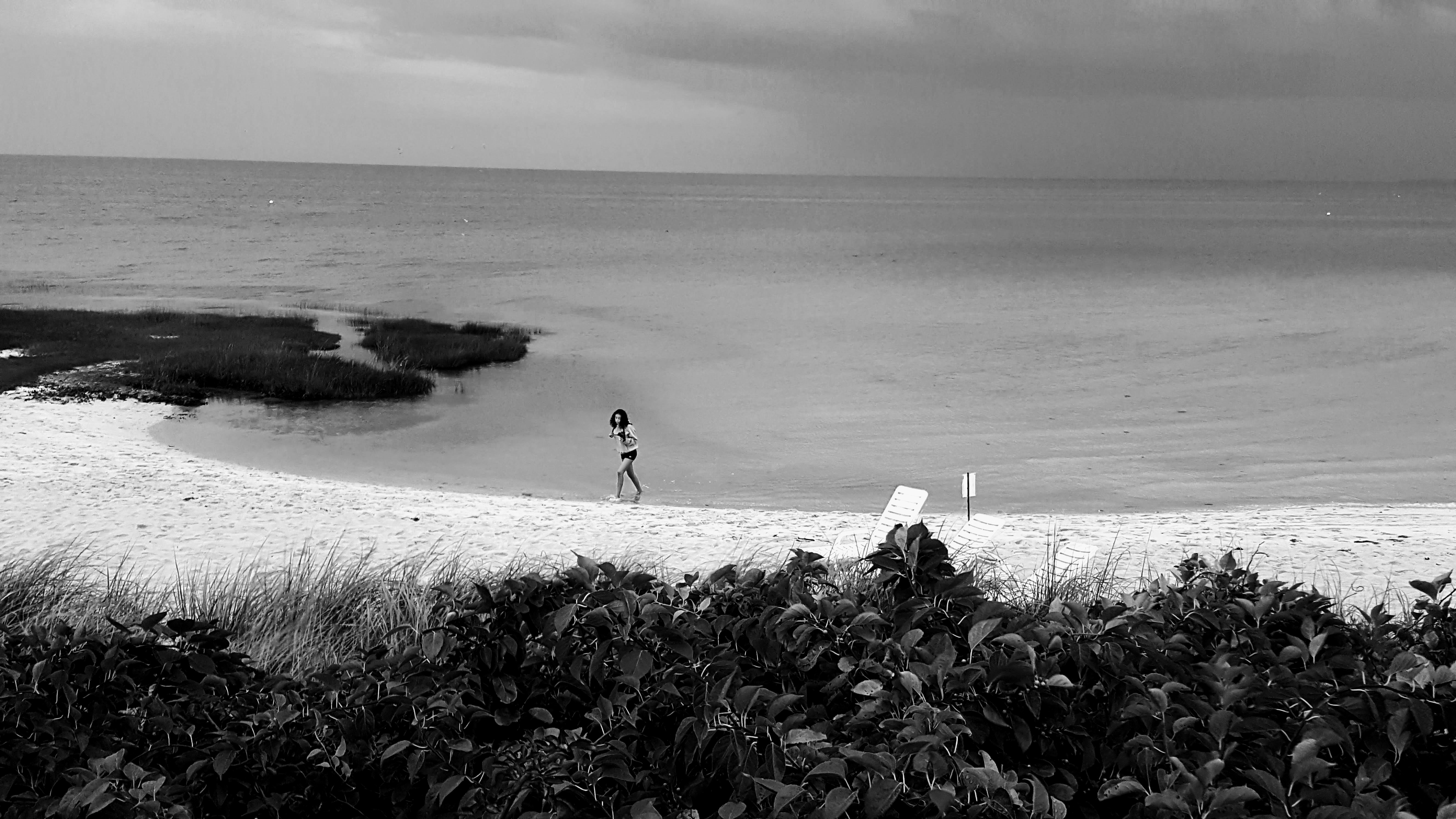 See the house we are staying in way in the background? No, I don’t either. But it’s there. So that’s low tide. Nothing unusual there, happens twice a day. At low tide people catch minutes, clams, crabs, harvest oysters, all kinds of things. As you can see, it was a cloudy morning and a storm passed through. There was a lightning concern so they had to clear the beach. Resulting in this odd beach ghost town.
