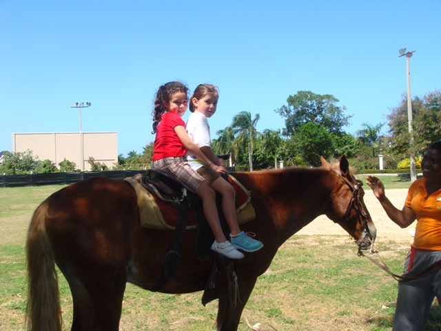 There was a kids’ club. For the most part Danielle just played with us, but one day she went and got to climb on these amazing rope bridges and also got to ride a horse. Victoria had fun in the pool as well.