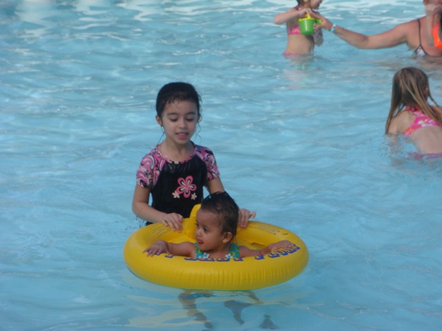 We’re in between lunch and dinner so we go by the pool to get some food. It’s not great and Danielle is fighting it. Did I mention that everyone was cranky? We basically get through the night with no major meltdowns and that had to be declared a success.