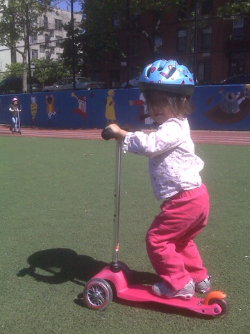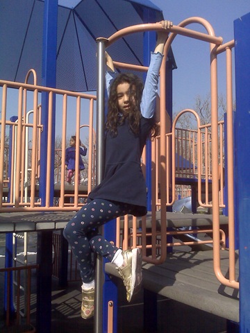 We also promised that we’d get her a hula hoop (after you’ve promised Wii stuff, the $7 hula hoop seems like the deal of the century). At Danielle’s school, being an urban school, recess is on the roof. They have a nice playground there. And they put out a bunch of hula hoops. This is one of those remarkable things about having kids. The last time I saw Danielle try a hula hoop I think she was four and couldn’t do it. We saw her last week doing it at a friends house. She’s a total expert. She barely looks like she’s moving and she can keep it up for hours. So we promised to buy her one.